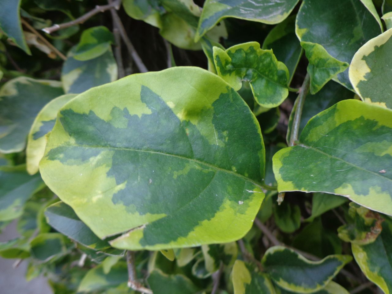 เฟื่องฟ้าด่าง เป็นไม้พุ่มรอเลื้อยใบ สูง 2 เมตร เรือนยอดทรงพุ่มกลม ทึบ มีหนามขึ้นตามลำต้น