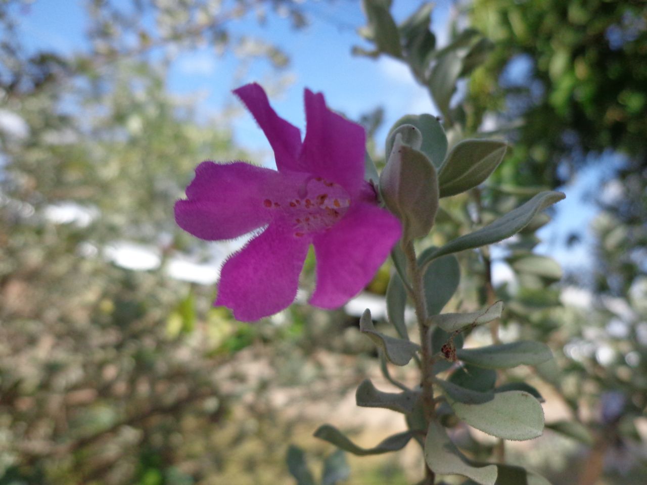 นีออน เป็นไม้พุ่มขนาดเล็ก สูง 1.5 เมตร เรือนยอดทรงพุ่มกลม ทึบ เปลือกลำต้นสีเทาเข้ม เรียบแตกกิ่งก้านจำนวนมาก กิ่งชูตั้งขึ้น ทรงพุ่มแน่นทึบ ใบ เป็น ใบเดี่ยว เรียงเวียนสลับ ใบรูปไข่กลับถึงรูปรี กว้าง 1-1.5 เซนติเมตร ยาว 2-2.5 เซนติเมตร ปลายใบมน โคนใบสอบ ขอบใบเรียบ ผิวใบด้านบนสีเขียวอมเทา มีขนยาวนุ่มปกคลุม มักบิดห่อขึ้นเล็กน้อย ดอก เป็นดอกเดี่ยว สีม่วงสดถึงสีชมพูอมม่วงแดง ออกดอกเดี่ยวตามซอกใบที่ปลายกิ่ง โคนกลีบดอกเชื่อมติดกันเป็นหลอด ปลายแยกเป็น 5 แฉก มีขนอ่อนนุ่มขนาดเล็กปกคลุม ดอกบานเต็มที่กว้าง 1-2 เซนติเมตร ผล เป็นผลแห้งแตก