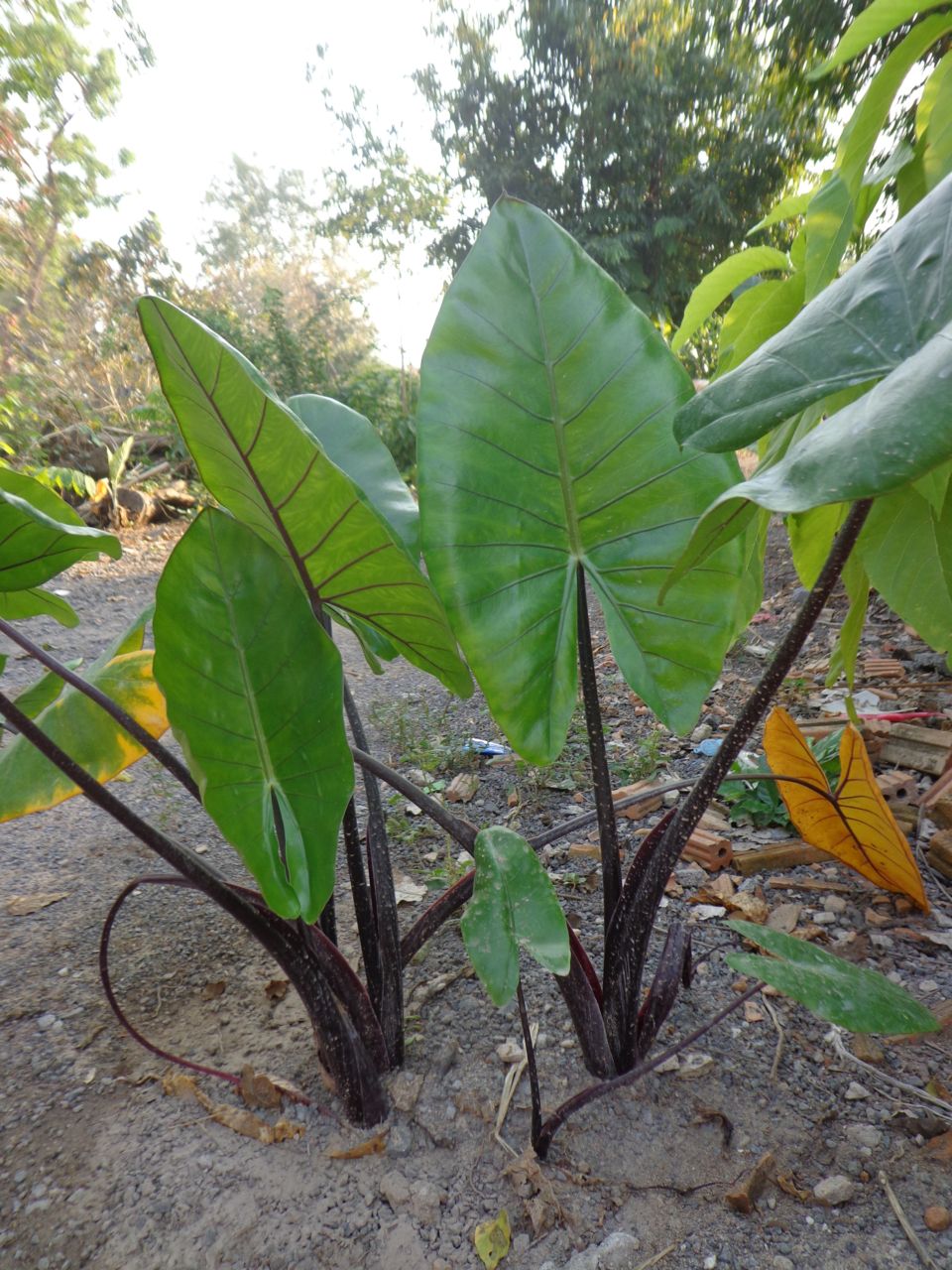 บอน เป็นไม้ล้มลุก สูง 1 เมตร มีลำต้นใต้ดินแบบเหง้าลักษณะเป็นรูปทรงกระบอก ใบ เป็นใบเดี่ยว เรียงสลับเวียนแผ่ออกรอบต้น ลักษณะของใบเป็นรูปไข่แกมสามเหลี่ยมหรือเป็นรูปหัวใจหรือรูปโล่ ปลายใบแหลม โคนใบเว้าแหลม ใบมีขนาดกว้างประมาณ 10-35 เซนติเมตร และยาวประมาณ 20-50 เซนติเมตร ก้านใบออกที่ตรงกลางแผ่นใบ โคนใบแยกเป็นแฉกสองแฉก ด้านหน้าใบเป็นสีเขียว เรียบไม่เปียกน้ำเพราะผิวใบเคลือบไปด้วยไข ส่วนด้านหลังใบเป็นสีเขียวอ่อนหรือม่วงหรือเป็นสีขาวนวล มองเห็นเส้นใบได้ชัดเจน ดอก เป็นดอกช่อเป็นแท่งเดี่ยวๆ ออกจากลำต้นใต้ดิน มีกาบสีเหลืองอ่อนหรือสีเหลืองนวลหุ้มอยู่ ยาวประมาณ 26 เซนติเมตร ดอกย่อยแยกเพศอยู่ในช่อเดียวกัน ฉ่ำน้ำ ดอกเป็นกระเปาะสีเขียวเป็นแท่งอยู่ตรงกลาง มีกลิ่นหอมและต่อมาจะกลายเป็นผลเล็กๆ จำนวนมากที่ประกอบไปด้วยหัวกลางและหัวย่อยอยู่รอบหัวใหญ่