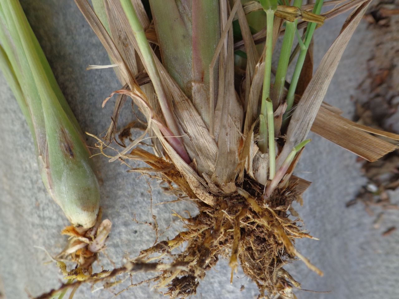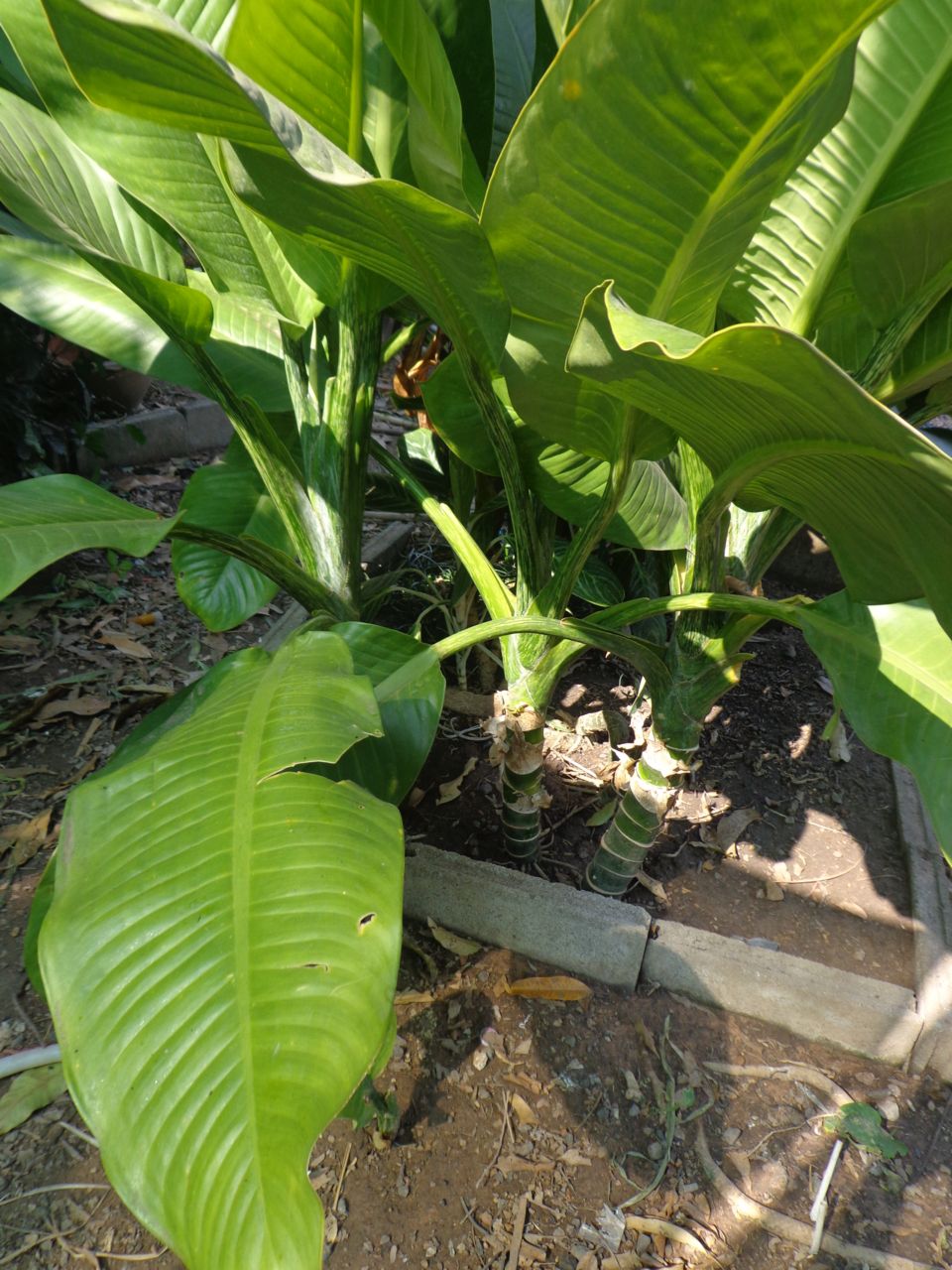 กล้วยน้ำว้า เป็นไม้ล้มลุก สูง 3.5 เมตร ลำต้นสั้นอยู่ใต้ดิน กาบเรียงเวียนซ้อนกันเป็นลำต้นเทียม